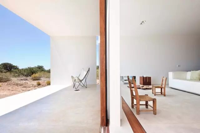 室内的材质于外墙的混凝土和条木完全呼应,